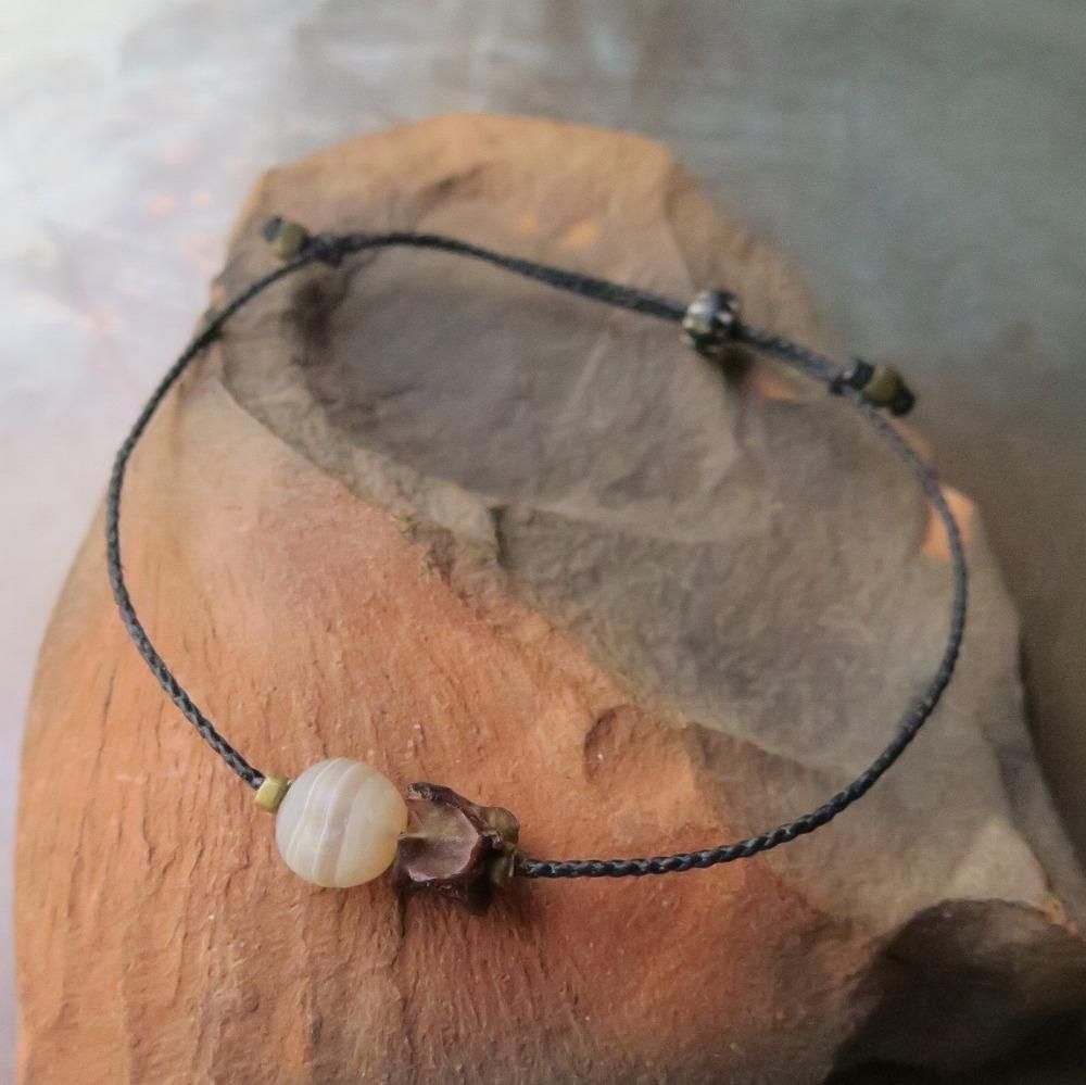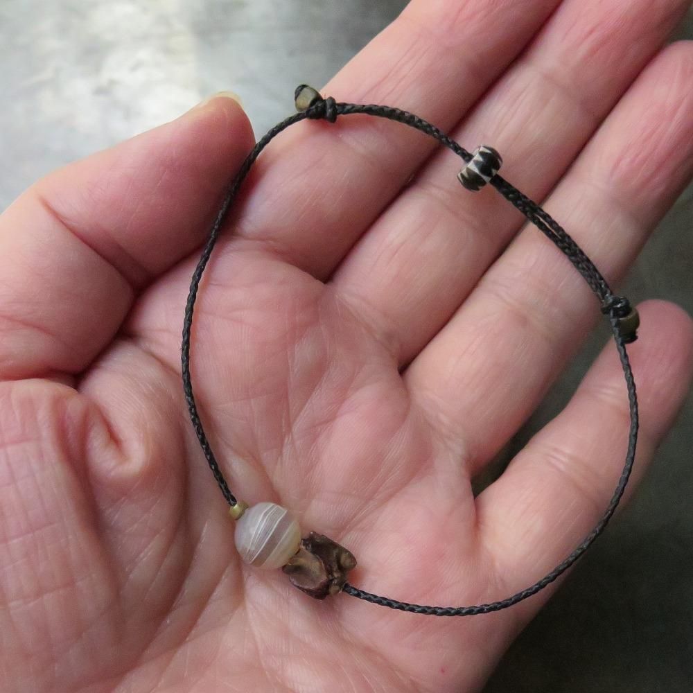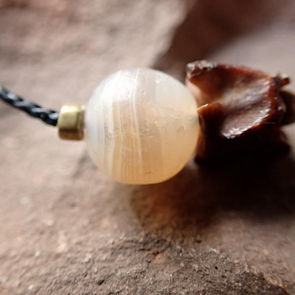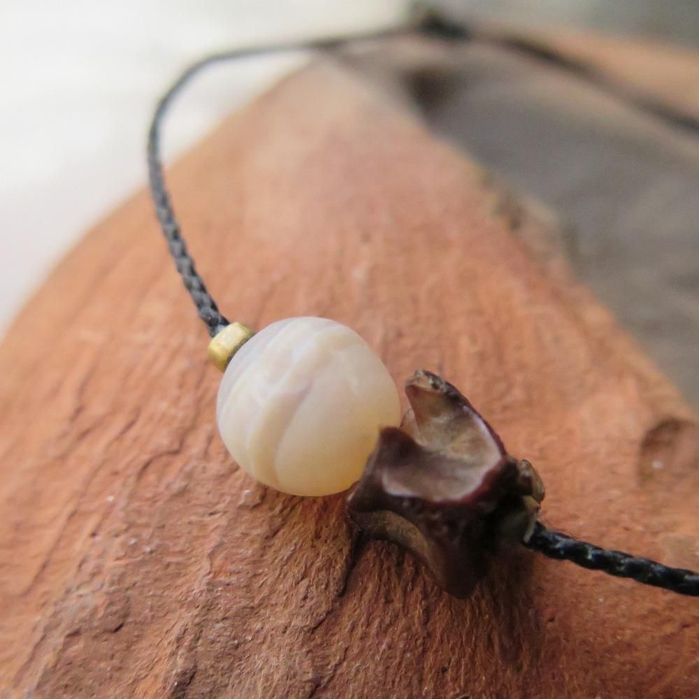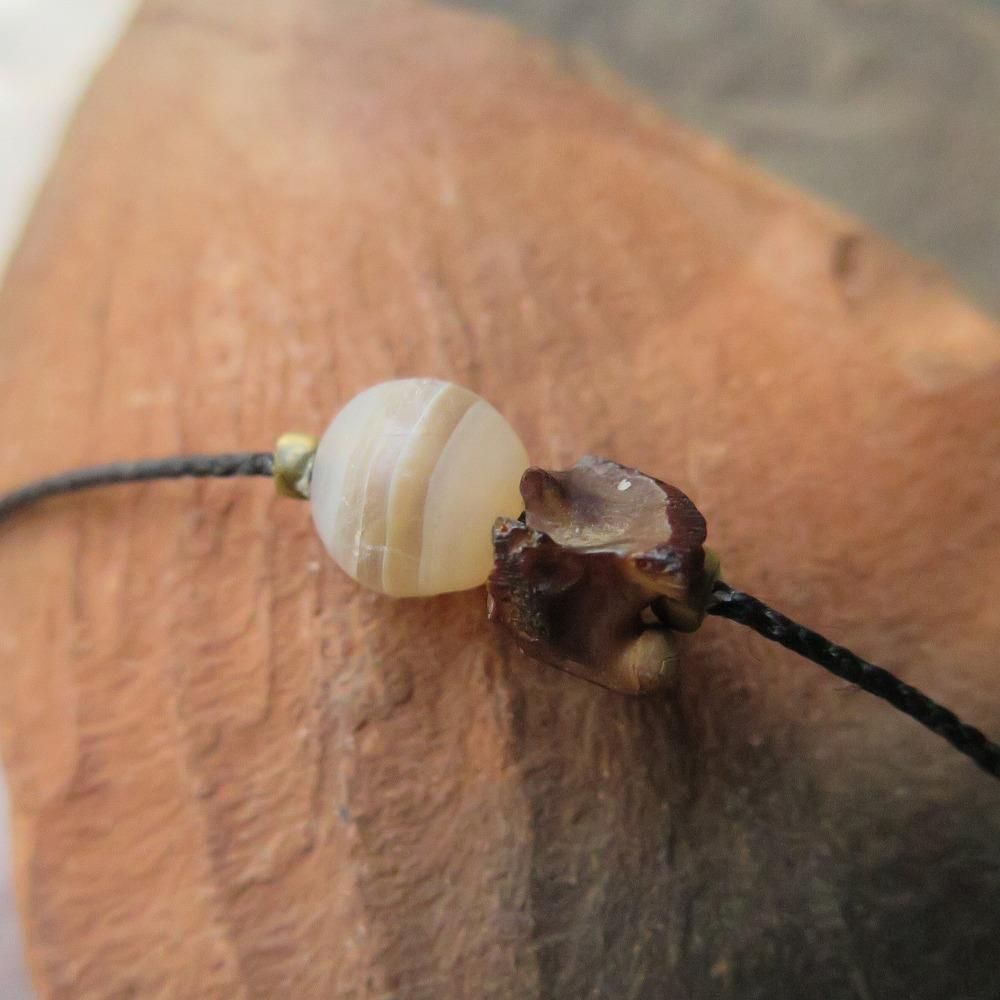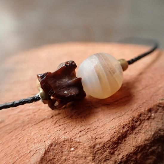 まん丸の古代瑪瑙と小さな蛇の骨を組合わせたブレスレットです。