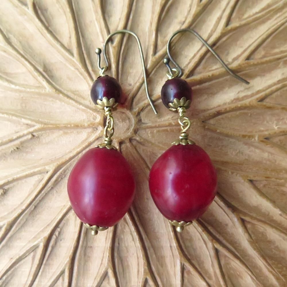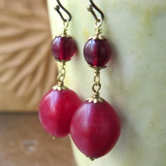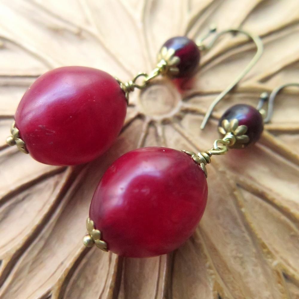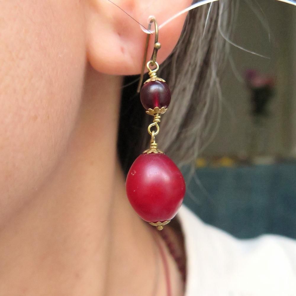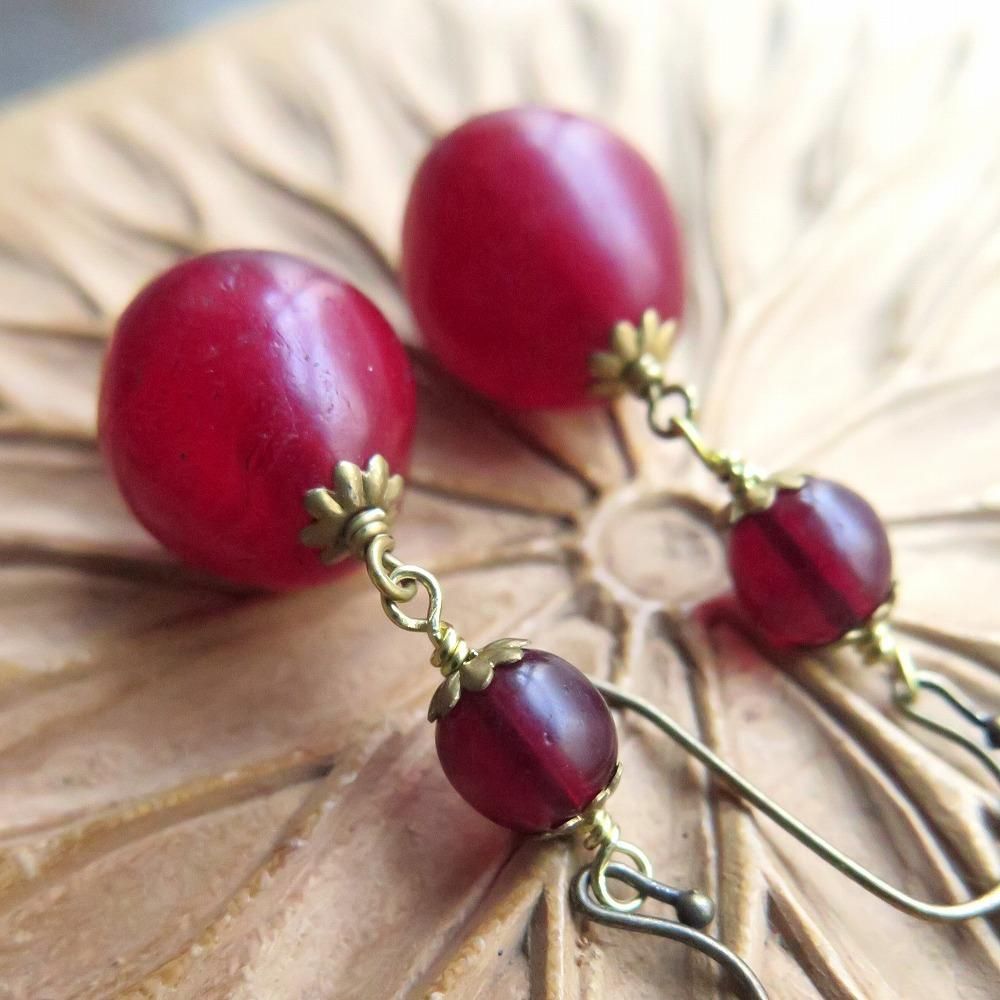 深い深い赤のエチオピアンチェリーと、黒く見えるほど深い赤の丸玉をつなぎました。