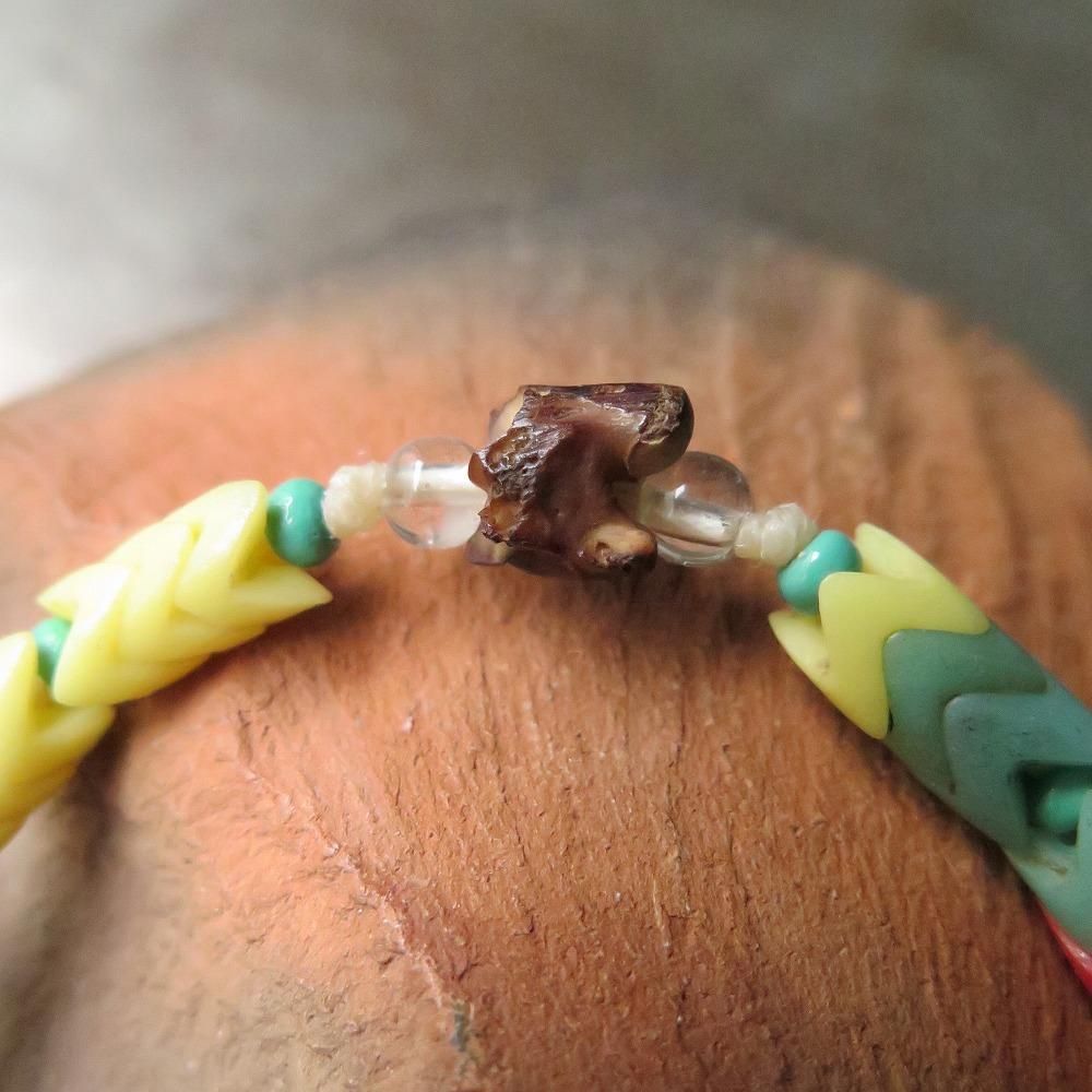 蛇の骨を模したスネークビーズに、本物の蛇の骨をあわせました。