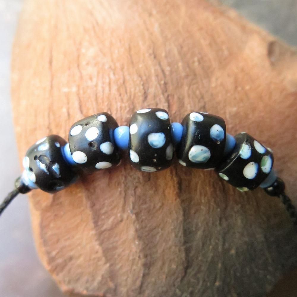 5玉並べ、間に水色のヴェネチアンシードビーズを入れました。