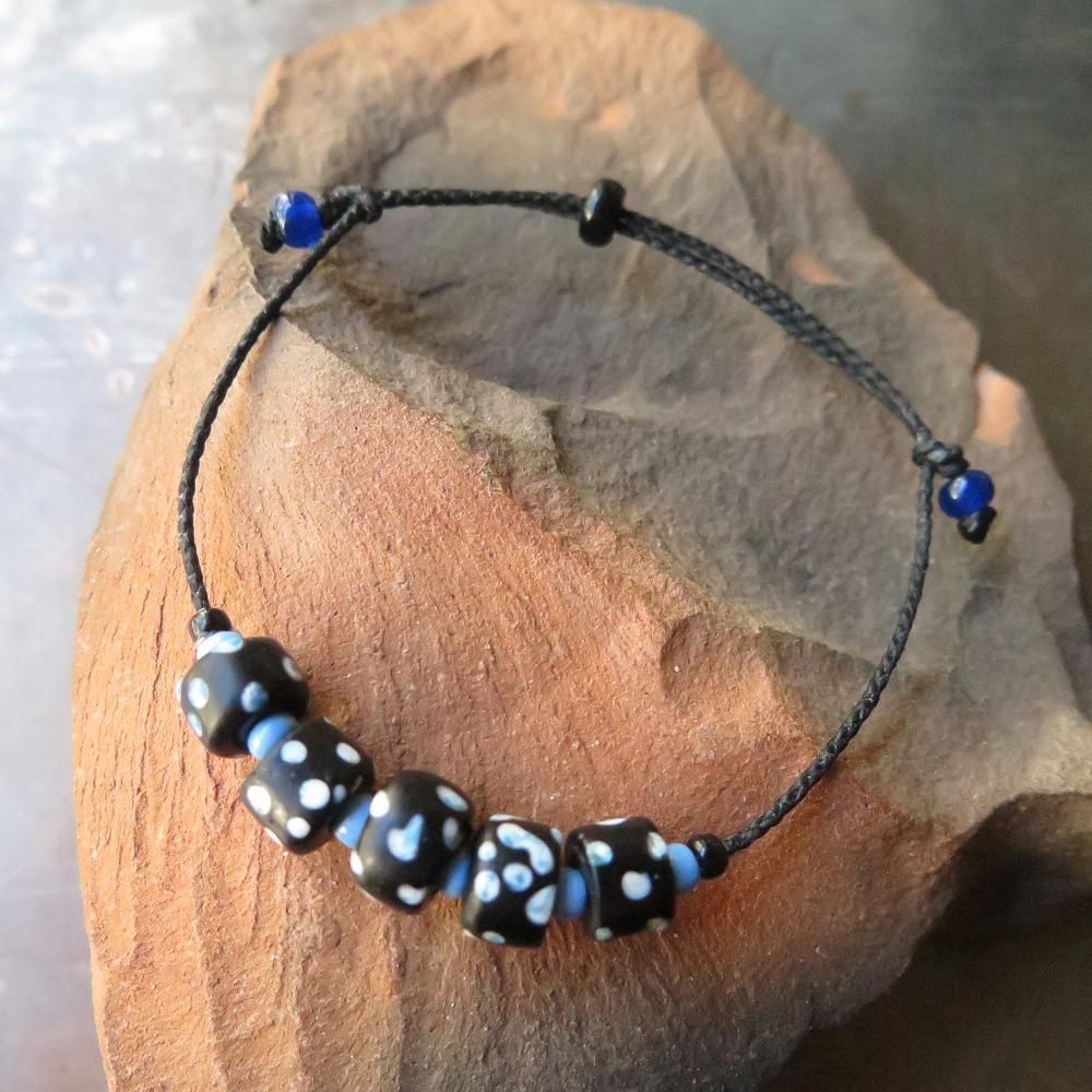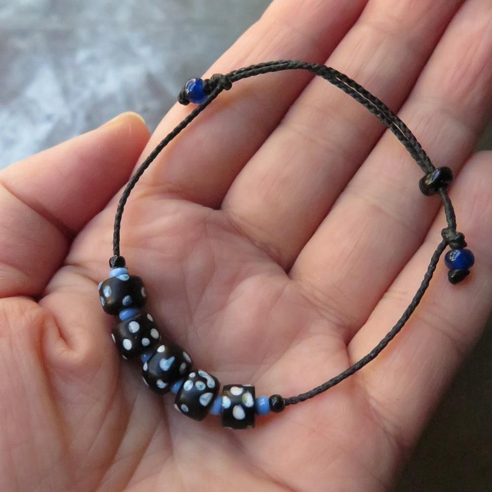 きりっとした黒が主体ですが、水色×白マーブルが可愛らしいブレスレットです。